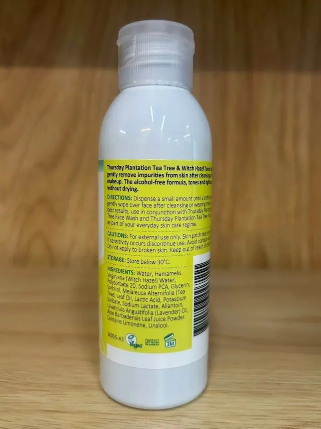 Thursday Plantation Tea Tree & Witch Hazel Toner captures the antibacterial power of Tea Tree Oil and the toning benefits of Witch Hazel to purify the skin and tighten pores. It helps to gently remove impurities from skin after cleansing or wearing makeup. The alcohol-free formula, tones and tightens pores without drying.