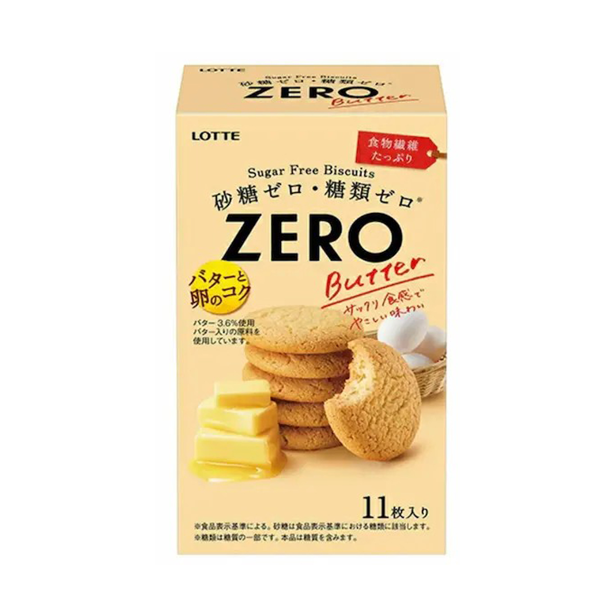 樂天 日本 ZERO 零糖雞蛋牛油曲奇餅乾 11枚 無糖Lotte ZERO Sugar-Free Egg & Butter Cookies 11 pcs