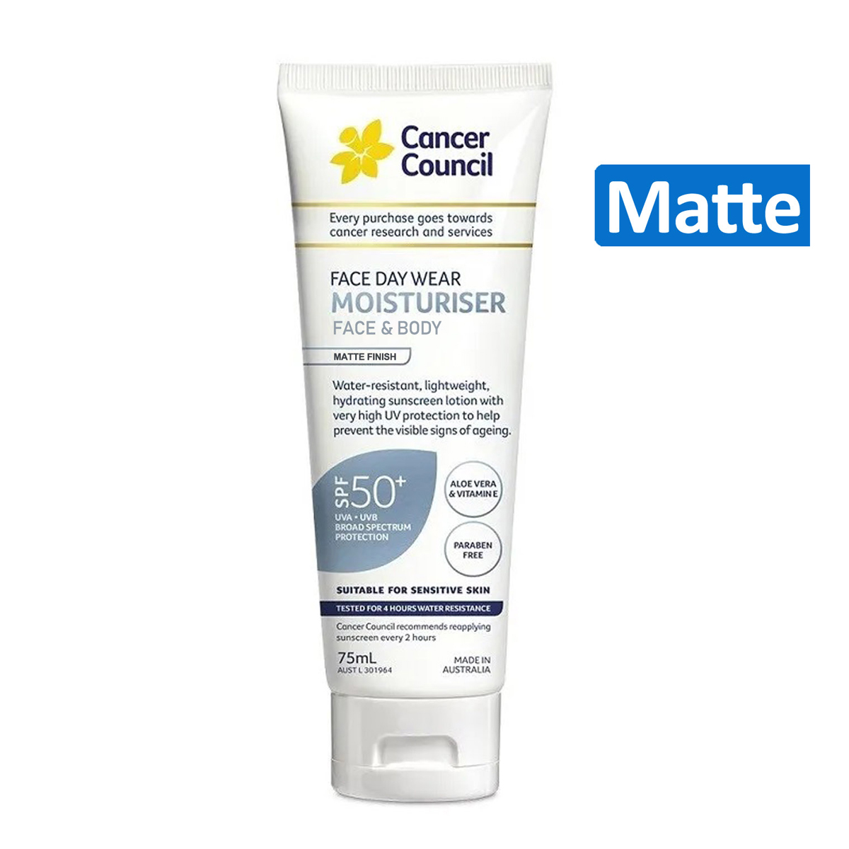 Cancer Council 啞緻效果 – 面部身體保濕防曬乳液 SPF50+ 75ml 控油防曬霜 Cancer Council Matte Finish face day wear Moisturiser (face & body) SPF50+ 75ml