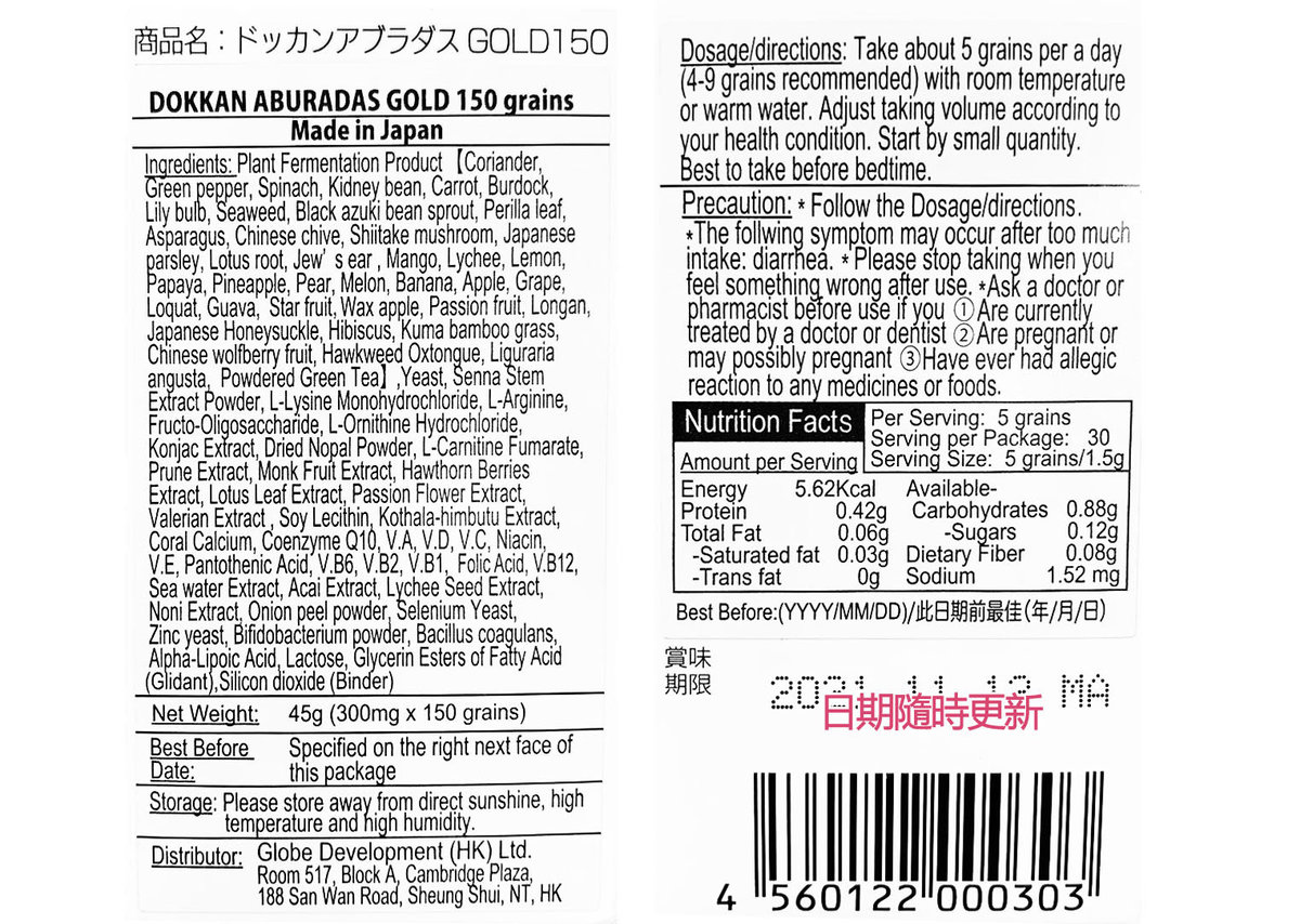 Dokkan Abura Gold 夜間植物酵素金裝 150粒 (EXP 2028年) Super Herb Dokkan Abura Gold 150caps (白盒)