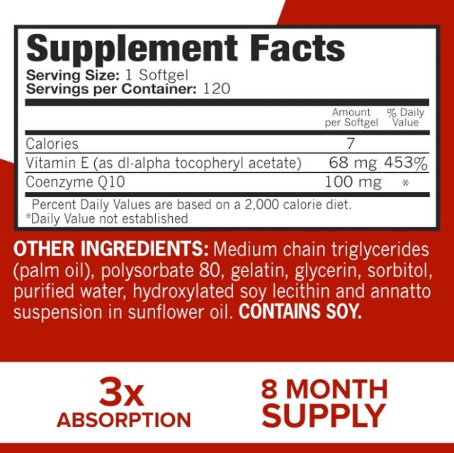 Qunol Coq10 超級輔酶 100毫克+維他命E 180粒膠囊 (EXP 2028年)