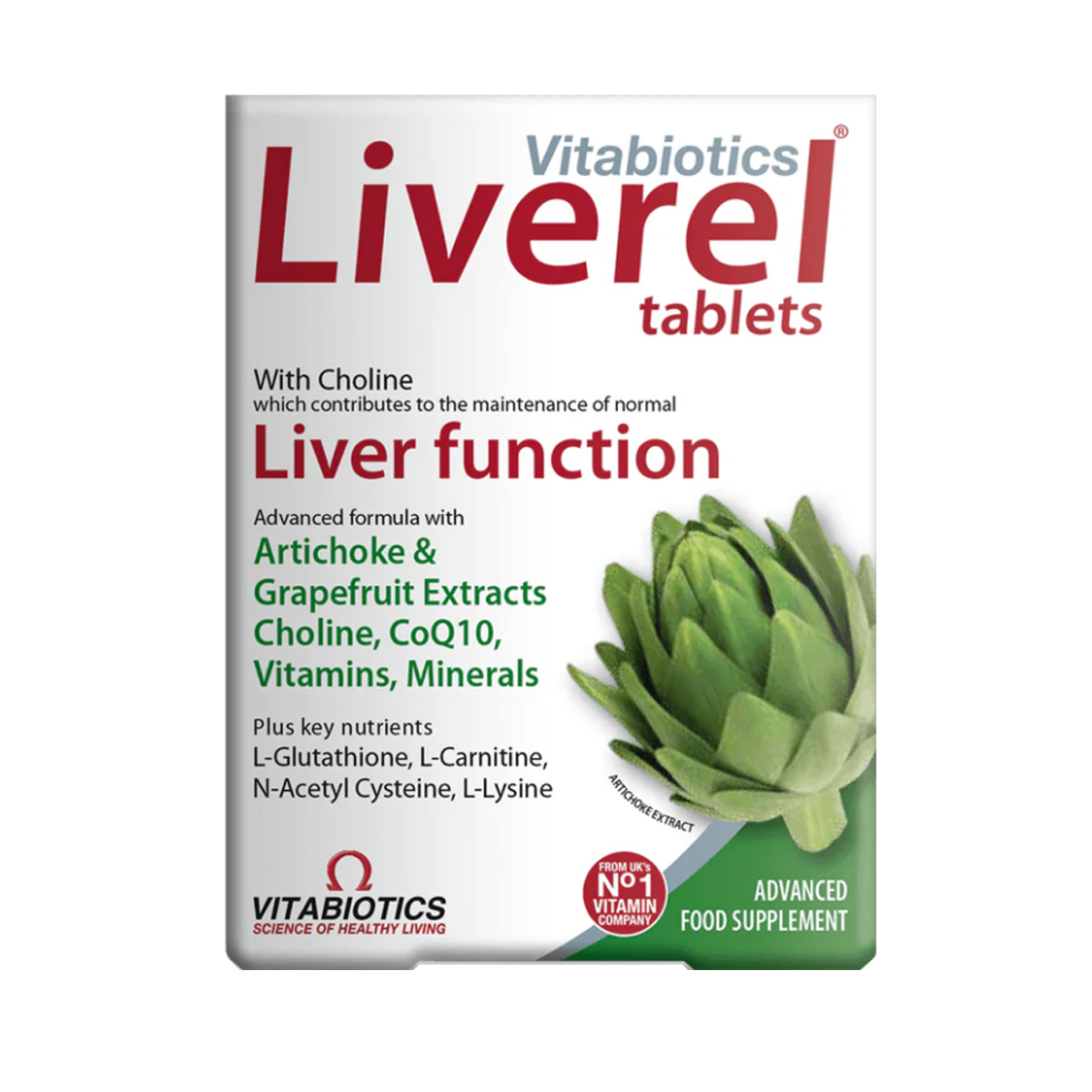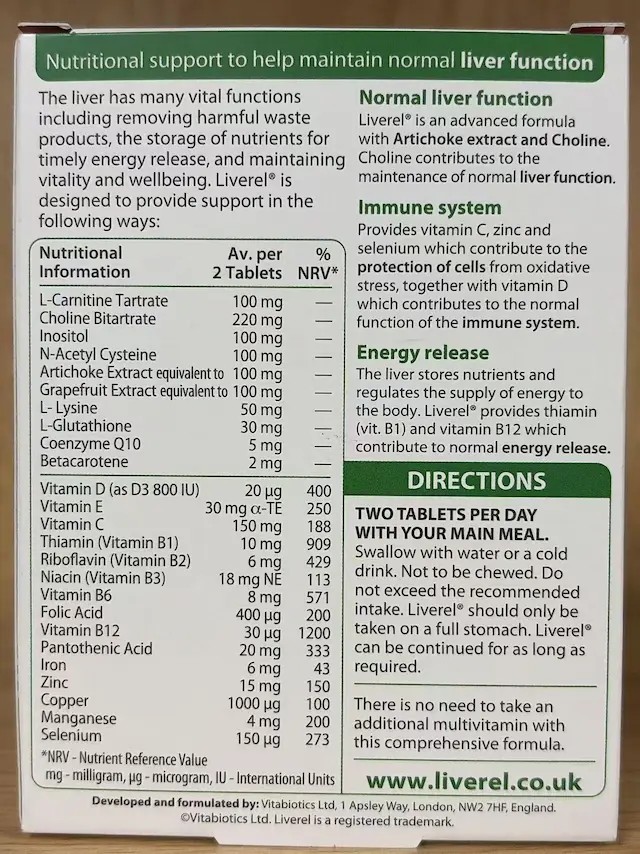 VITABIOTICS Liverel 護肝精華配方 (EXP 2028)(朝鮮薊萃取物+膽鹼+輔酶)60粒 支持健康肝臟功能 VITABIOTICS Liverel Original (Artichoke extract + Choline + Q10) 60 tablets